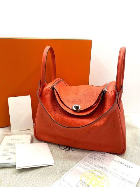 Hermes Lindy 30, Orange Poppy Clemence, A Stamp