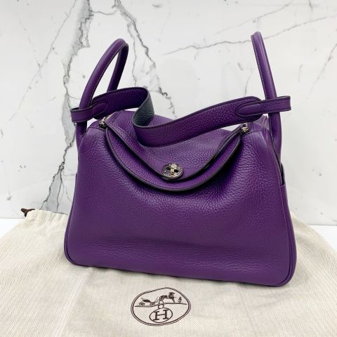 Hermes Lindy 30, Ultraviolet Clemence (Bleu Obscure interior), Q Stamp