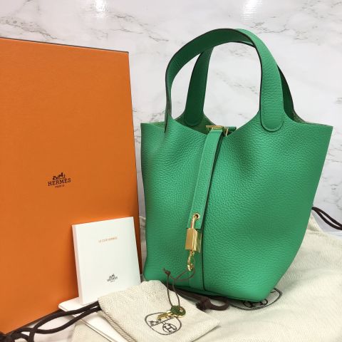 Hermes Picotin Lock 18, Vert Menthe Clemence, Z Stamp