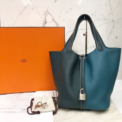 Hermes Picotin Lock 22 Casaque, Vert Cypress and Vert Bosphore Clemence, Z Stamp/ Condition