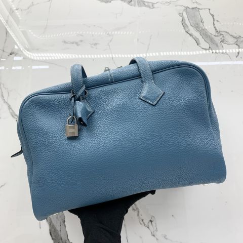 Hermes Victoria 35 Bag in Blue Clemence Leather, R Stamp