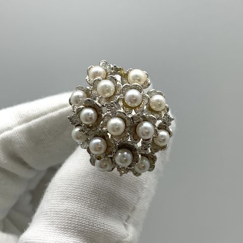 K18 / 750 WG PEARL AND 8P DIAMOND RING 11.69G PEARL: APPROX 3.6-3.8MM X 15PCS, DIAMOND: 8P, 0.14CT TOTAL