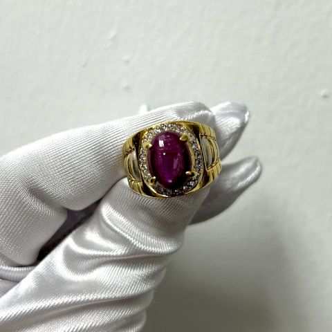 K22 / 916 APPROX1.44CT MAROON MOONSTONE W/ DIAMONDS YG RING