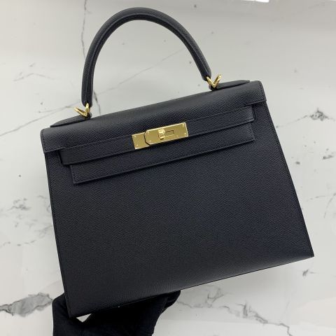 Kelly 28 in Sellier Black Epsom, U Stamp