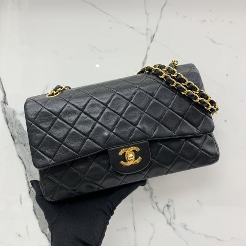 LAMBSKIN 25CM MEDIUM DOUBLE FLAP NO1 NO CARD VINTAGE
