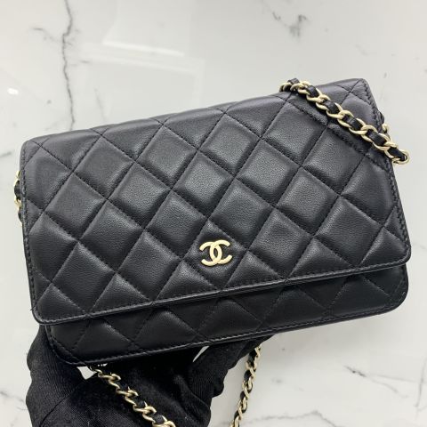 LAMBSKIN BLACK WALLET ON CHAIN GHW NO.19 WCARD