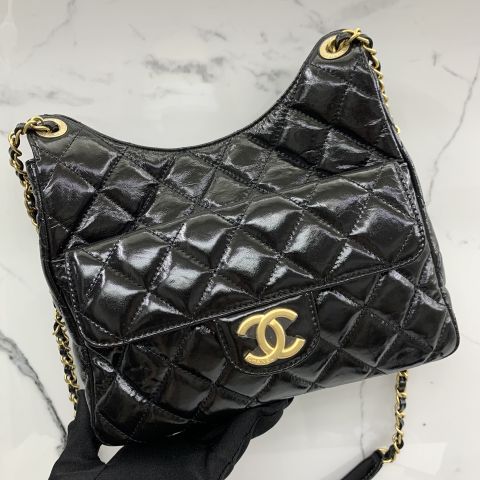 MATELASSE AS3690 SHINY CRUMPLED CHAIN HOBO MICROCHIP