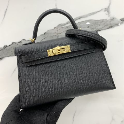 Mini Kelly in Black Epsom, B Stamp