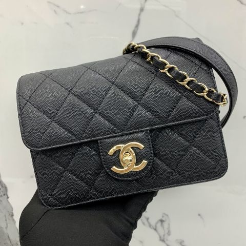 Mini Matelassé Flap Bag in Caviar Skin