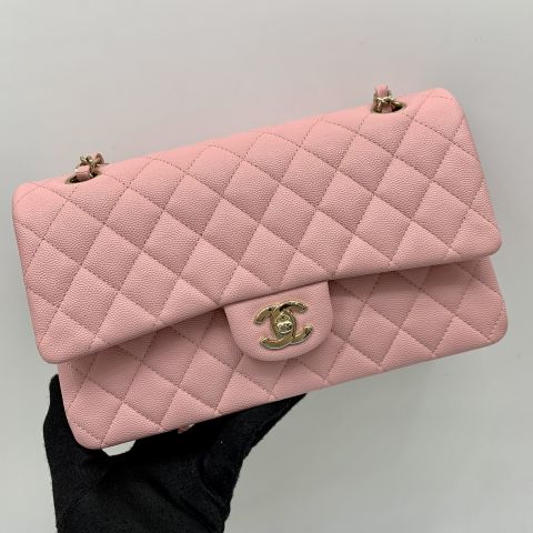 Pink Medium Classic Double Flap Bag in Caviar Skin