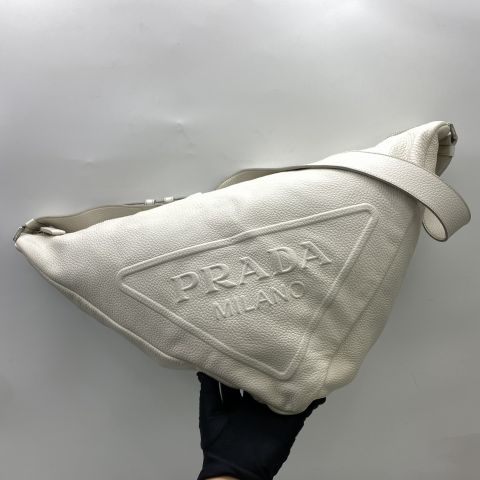 2VY007 LARGE LEATHER PRADA TRIANGLE BAG SHOULDER WHITE