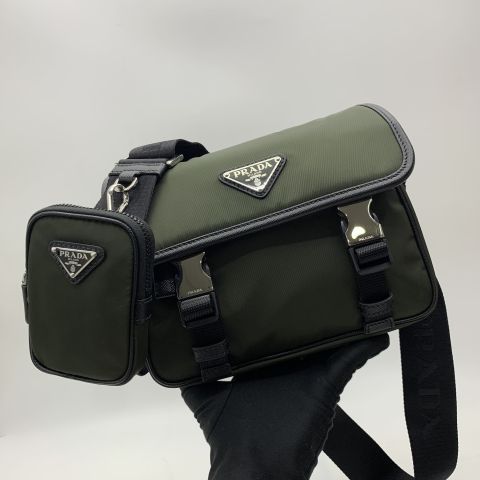 2VD034 RE-NYLON & SAFFIANO LEATHER SHOULDER MESSENGER GREEN