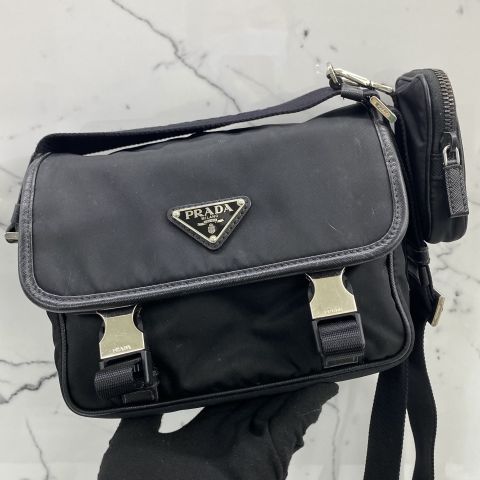 2VD034 RE-NYLON AND SAFFIANO LEATHER SHOULDER BLACK