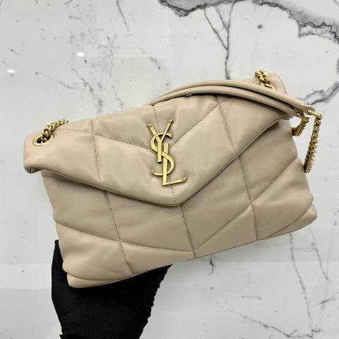 Small Beige Puffer Chain Tote