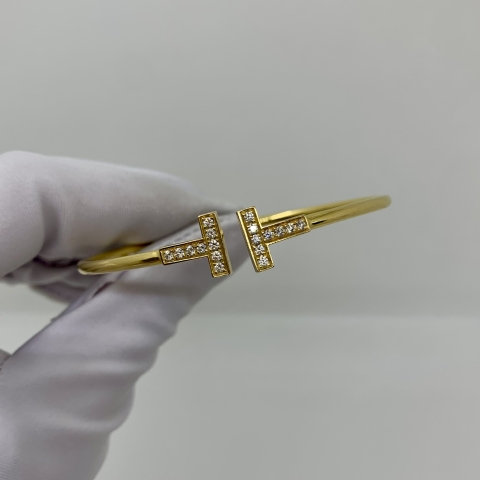 TIFFANY FINE JEWELRY BRACELET T WIRE DIAMOND AU750 BANGLE 7.95G