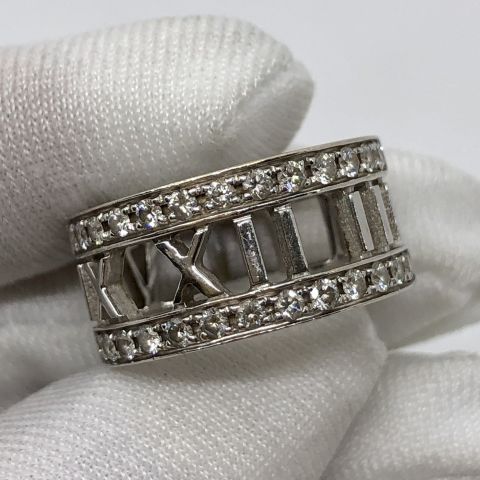 TIFFANY FINE JEWELRY RING ATLAS HALF DIAMOND 26P WG750 5.8G