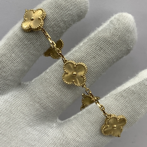 VAN CLEEF & ARPELS FINE JEWELRY BRACELET ALHAMBRA VINTAGE 5 MOTIF YG750 GUILLOCHE 19.3G FULLSET 2021 JC795668