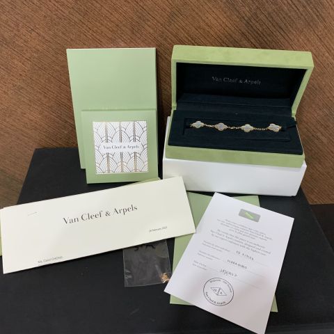 VAN CLEEF & ARPELS FINE JEWELRY BRACELET VINTAGE ALHAMBRA 5-MOTIF MOP YG750 10.62G (W CERT/INVOICE) JD317126