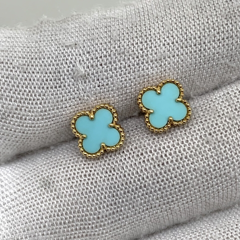 VAN CLEEF & ARPELS FINE JEWELRY YG750 SWEET EARRINGS ALHAMBRA TURQUOISE FULLSET 2015 2.55G JE331200
