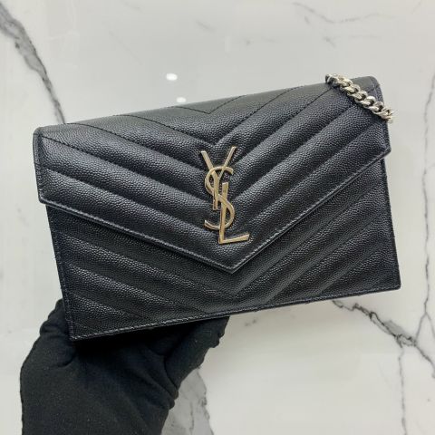 YSL BAG ENVELOPE 393953 WALLET ON CHAIN SHOULDER BLACK SHW