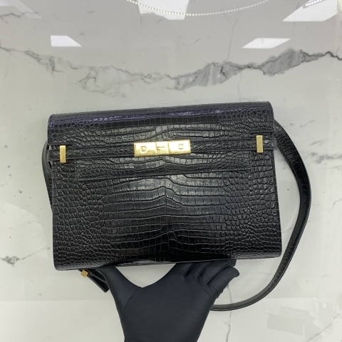 YSL BAG MANHATTAN 579271 SHOULDER EMBOSSED CROCO BLACK