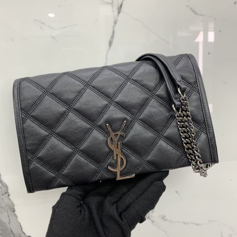 585031 LAMBSKIN DIAMOND QUILTED BECKY WALLET ON CHAIN BLACK